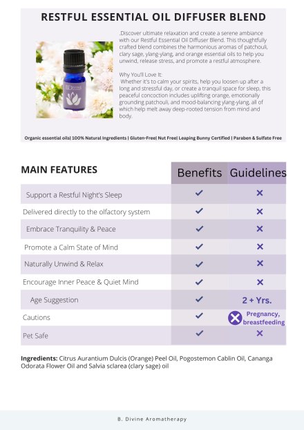 • Versatile Use: Enjoy the benefits of our Restful Essential Oil Diffuser Blend in bedrooms, meditation spaces, yoga studios, or any area where tranquility is desired.