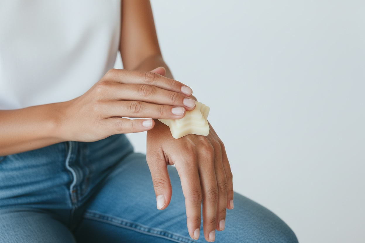 Solid Lotion Bar: Glide over dry areas, elbows, or hands for deep moisture.