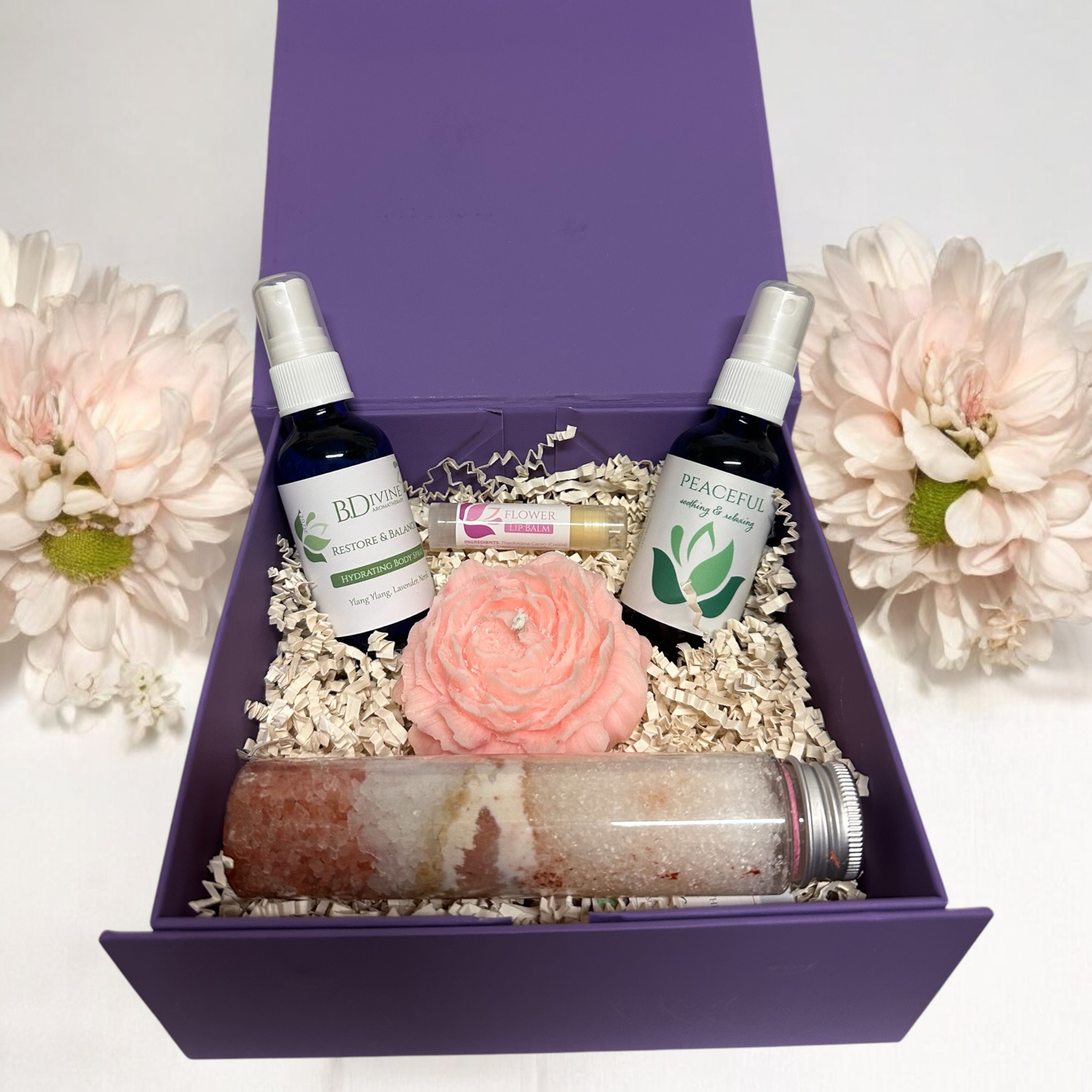 Find your calm with our Tranquil Moments Self-Care Gift Set – a beautifully curated collection of natural, aromatherapy-infused essentials designed to soothe the senses and create space for rest and renewal. Elegantly packaged in a deep purple magnetic gift box, this set is the perfect self-care gift for women seeking balance and peace.
